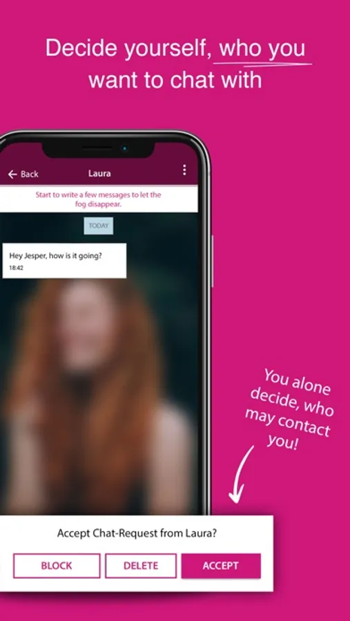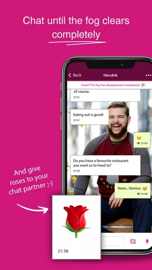 When chatting, your pictures will be fogged at first, so you can focus on what's on the inside. Just get to know each other casually. The closer you get to know each other, the less your pictures will be obscured by fog. This way, you'll gradually get to know your chat partner visually as well.