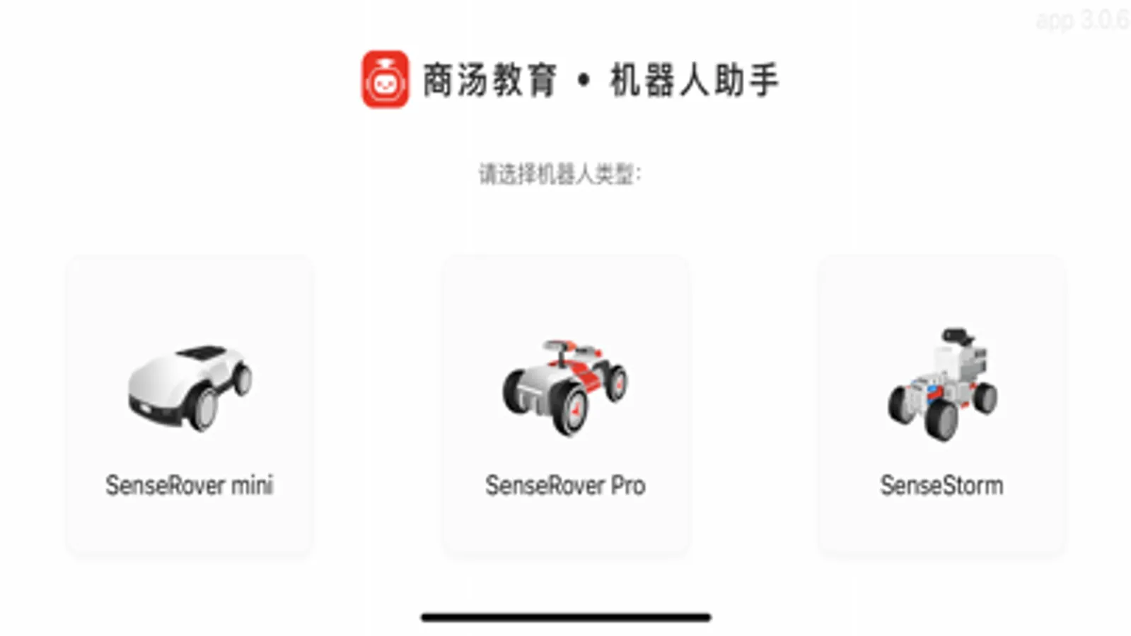 当前版本支持 SenseRover mini, SenseRover Pro, SenseStorm 三款硬件机器人产品。