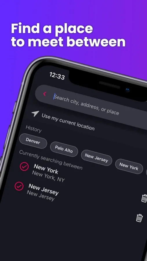 Whatever you're looking for, Meet Between will help you find the best location that's fair for everyone.