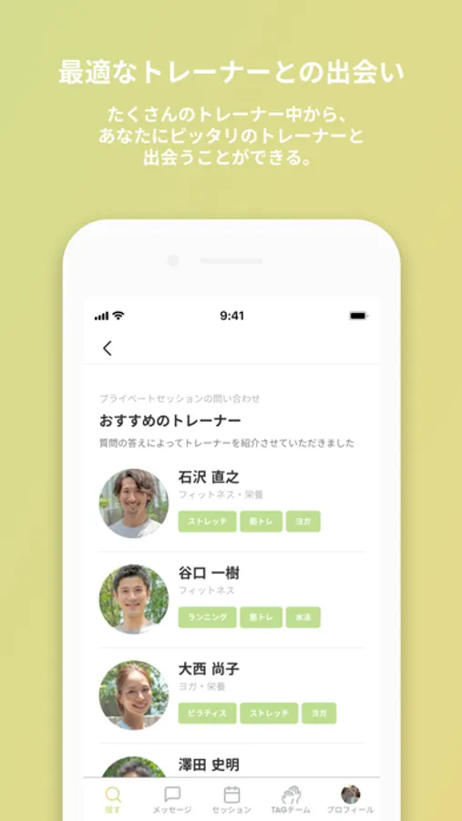 マッチング機能によって、多彩なジャンルのトレーナーの中から、あなたに最適なトレーナーと出会うことができます。