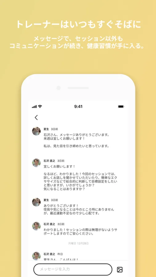気になるトレーナーには、メッセージ機能でコミュニケーションをとることができ、事前に信頼関係を構築してセッションに臨むことができます。