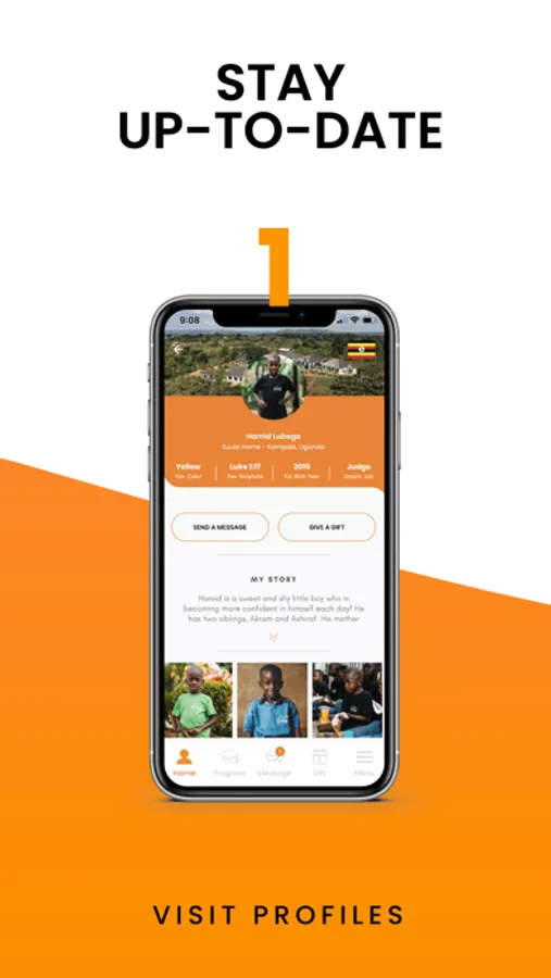Get frequent updates, write and receive messages, give gifts, and more. You may be worlds apart, but with the Project Orphans App you can stay connected anywhere, anytime.