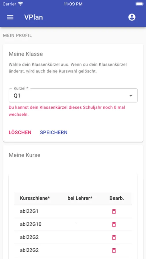 - Lehrer: Material/digitale Medien für die Stunde reservieren; Raumwechsel für die eigenen Stunden eintragen.