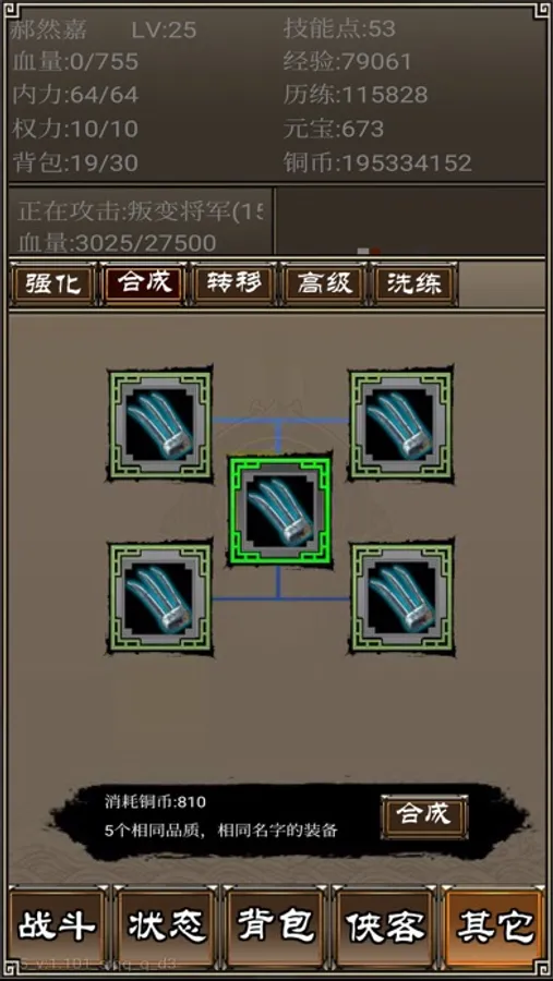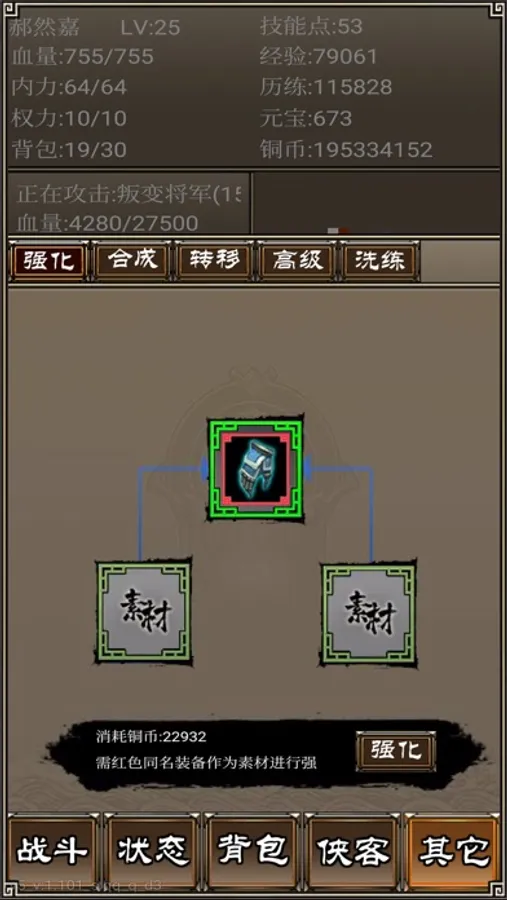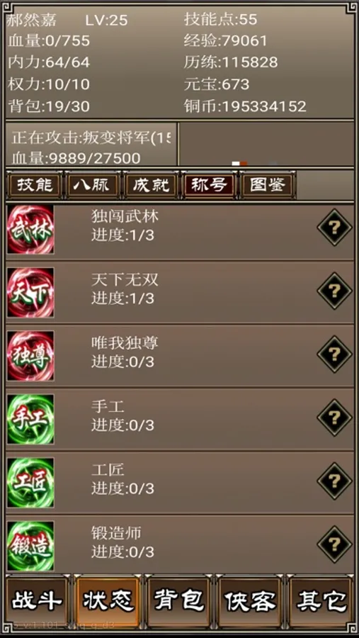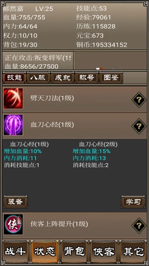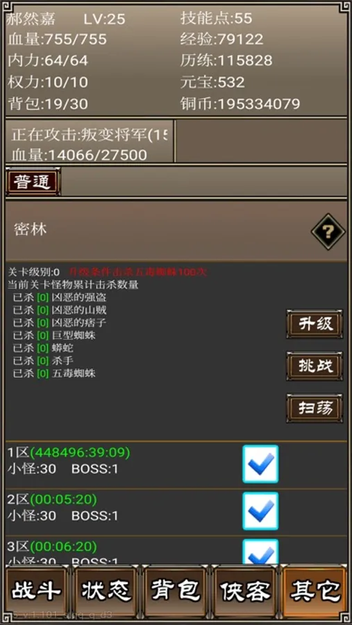 离线闯关:击败各门派的关卡,就可以收集到相关武学等资源