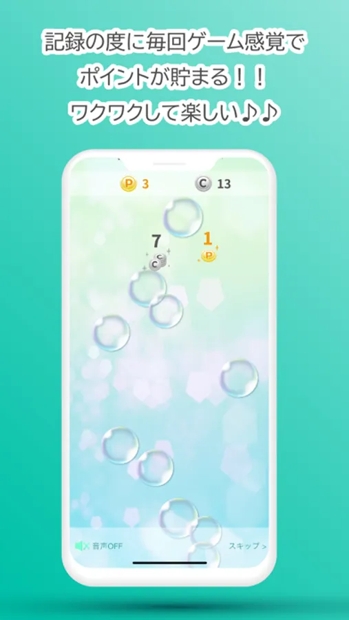 お買物の記録する度に毎回簡単なタップゲームを楽しめます(スキップもできます)