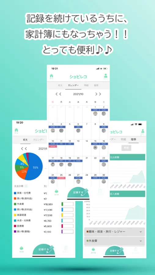 毎日の支出を記録する際に、レシートや商品のバーコードを利用して簡単に記録することができます。