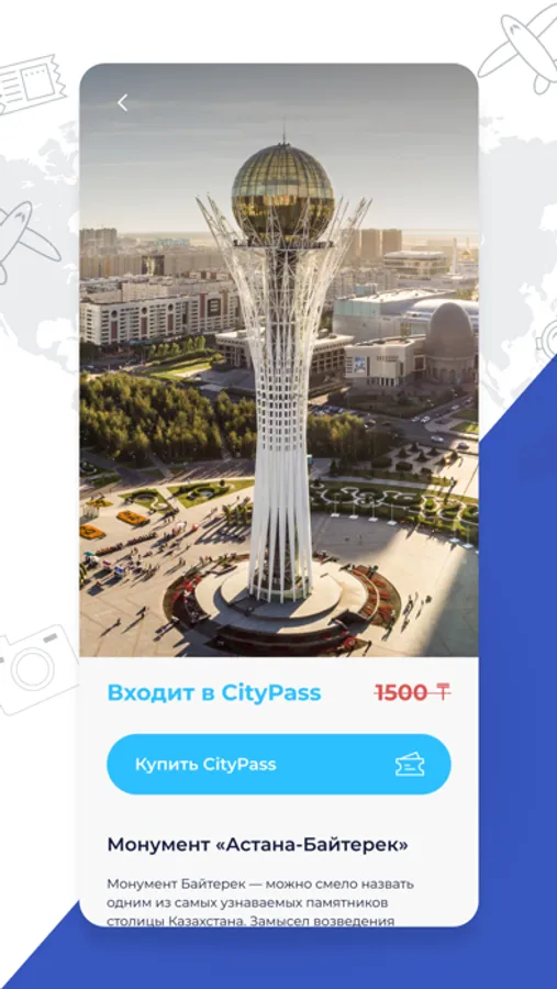 CityPass Kazakhstan is a free access to all attractions, museums and excursions of the city with a profit of more than 70%, within 24 and 72 hours of the online card validity.