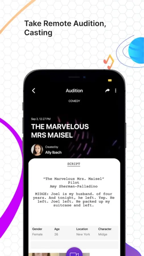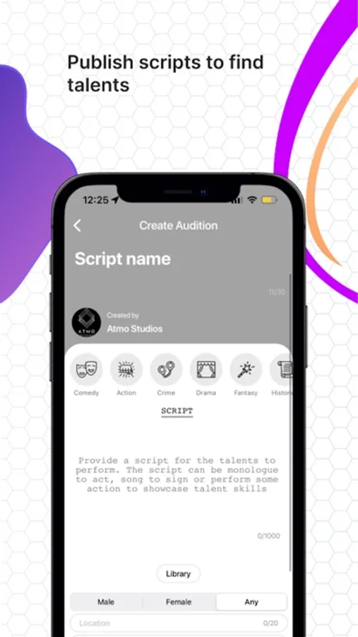 As an actor you search through the app to find the script you feel best showcases your talent. Once you settle on the script you create a social audition. Using the app you’ll be able to film a 30 second or so long audition for the project.