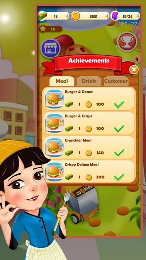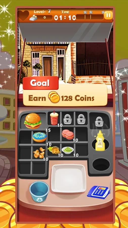 • Earn coins and Rewards by serving customers.
