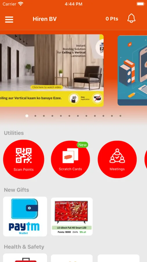 Dashboard – All your account information including lifetime points scanned, redeemed and current balance; view tier status and adopter Pidilite officer (BDE) contact details.