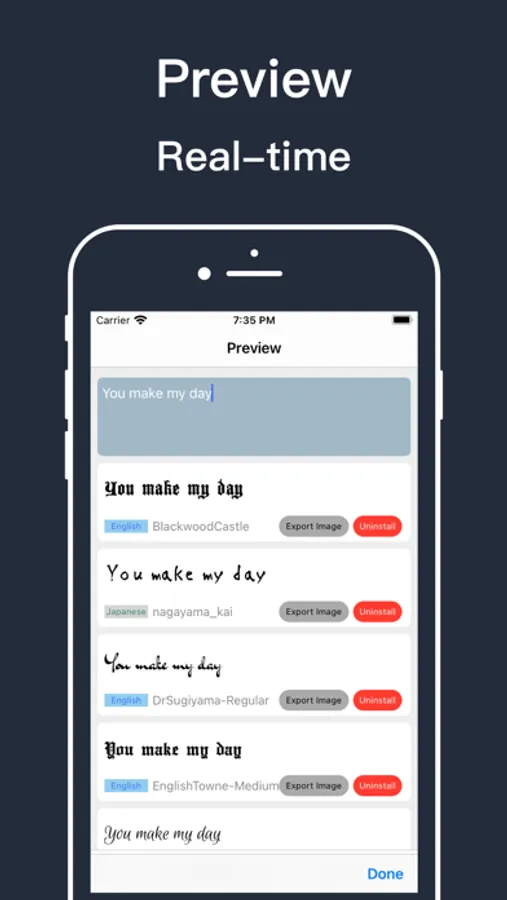 More than 100+ fonts for you to choose, and the fonts will be upodated on a regular basis