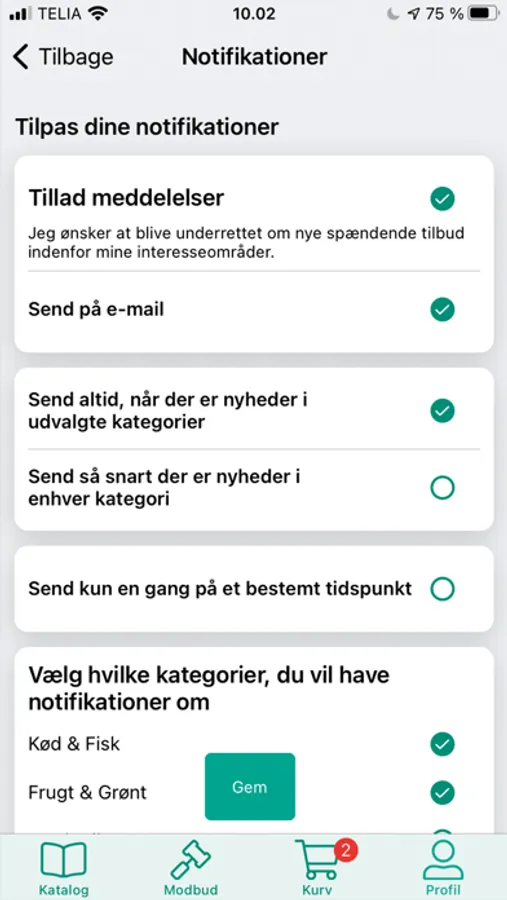 Gaztro-appen giver dig mulighed for at vælge kategorier og filtre, så du som måltidsvært f.eks. kan se ugens Top-10, leverandørers mix-kampagner eller datokritiske varer. Du kan også udvælge dig nogle favoritter, som du kan vende tilbage til senere, hvis varerne ikke er blevet solgt i mellemtiden.