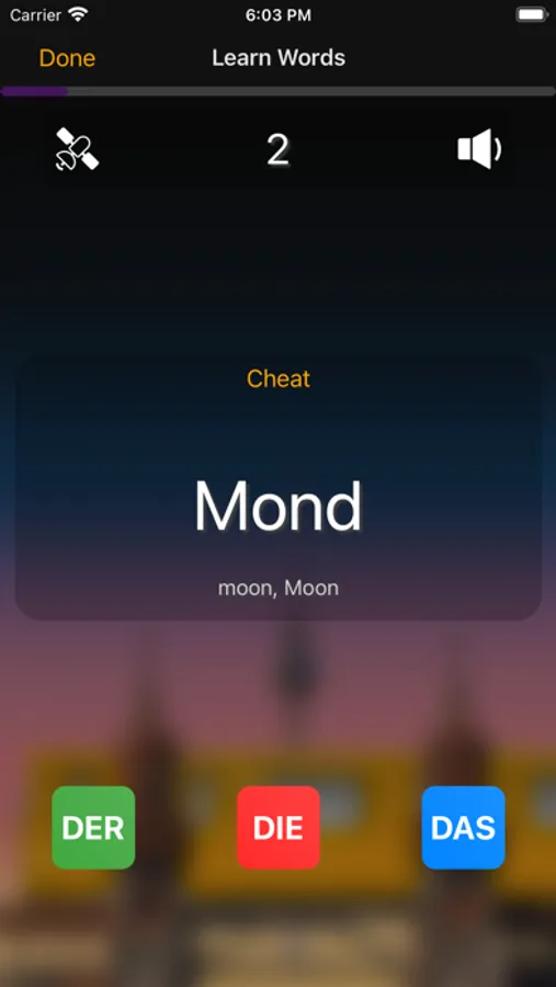 Der-Die-Das Train is a game of German nouns and their articles (der, die, and das) and will help you learn and memorize which article goes with which noun.