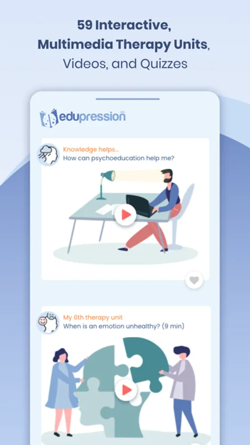 edupression.com is a digital self-help therapy program for patients with unipolar depression or burnout. The therapy is based on elements of behavioral therapy, latest, scientific findings and methods.