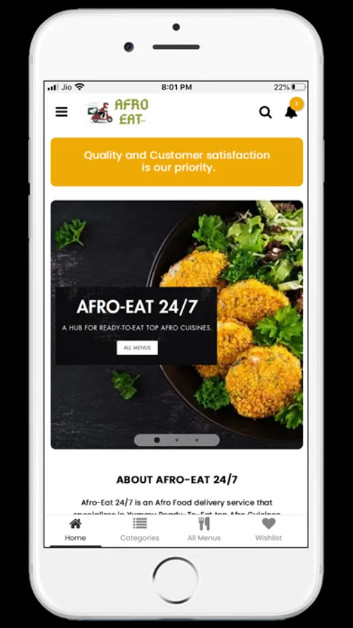 Afro-Eat 24/7 is an Afro Food delivery service that specializes in Yummy Ready-To-Eat top Afro Cuisines delivered to your home within 2 HOURS. Our food delivery services is inspired by the love of Afro Cuisines, and to make it more available with more varieties. As a food enthusiast, our expertise is to provide Yummy Afro Cuisines, quality products and excellent customer service.