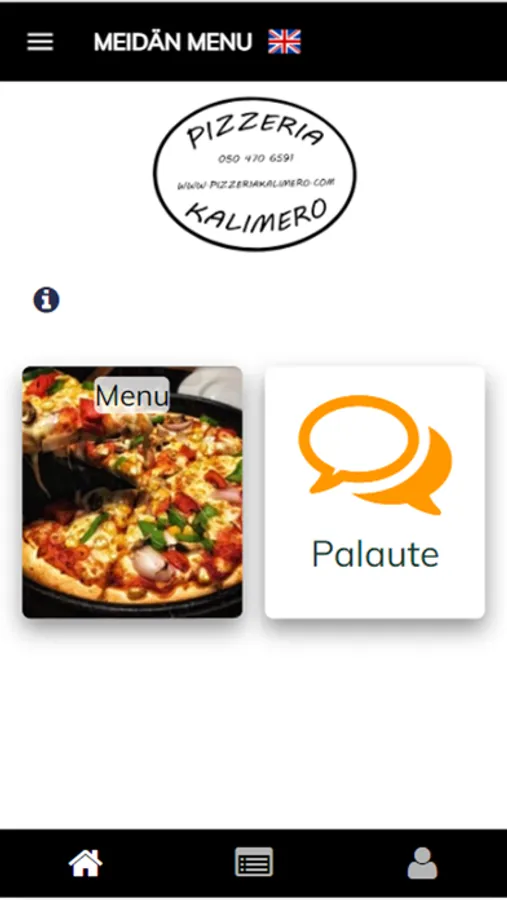Pizzeria Kalimero ravintola-applikaatiossa on myös seuraavat toiminnot: