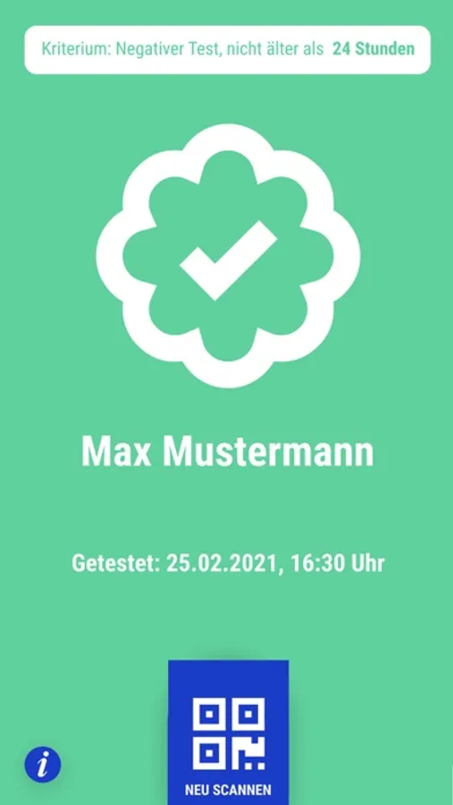 Wir erhalten die Daten direkt vom Testzentrum. Dabei werden Prüfwerte erstellt, die verhindern, dass der QR-Code manipuliert werden kann und z.B. ein anderer Name genutzt wird oder man sich selber ein Testergebnis ausstellt.