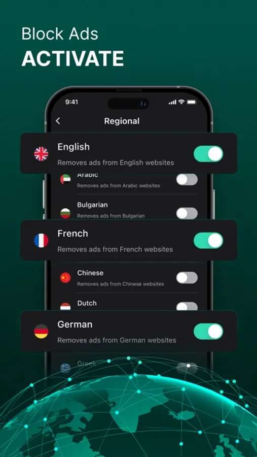 AdBlock: Web Browser Safe helps you block ads in specific languages such as English, German, Dutch, French, Chinese, Japanese, Vietnamese,...