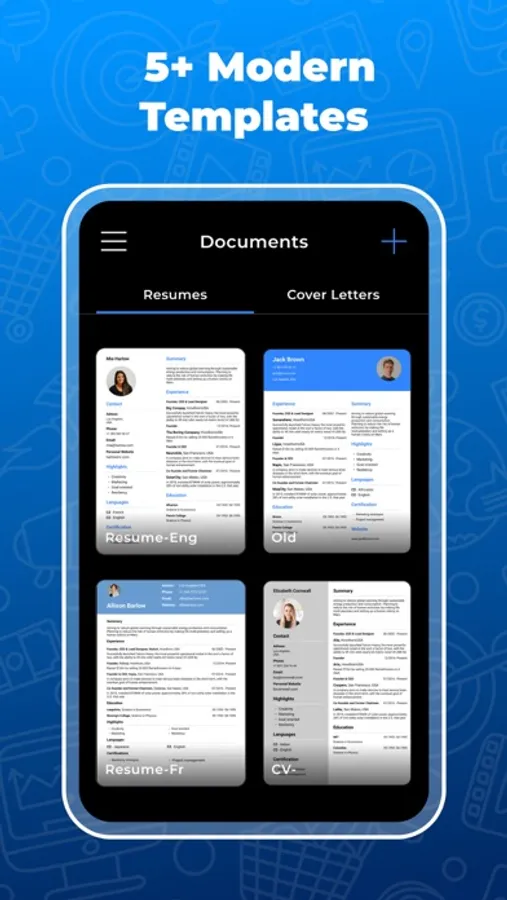 Create professional resumes and cover letters with Resume Builder App in few minutes!