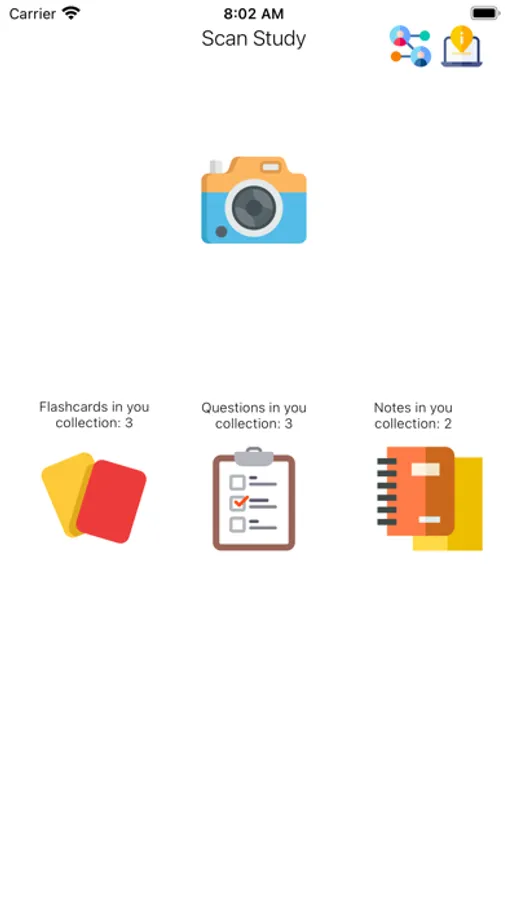 Scan study provides easy and quick way to build your test questions, notes and flashcards collection wich your camera, and automatic OCR.