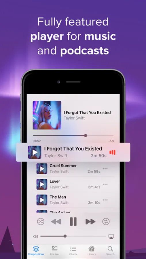 - Mix and match albums, playlists, songs, podcasts etc. in your compositions