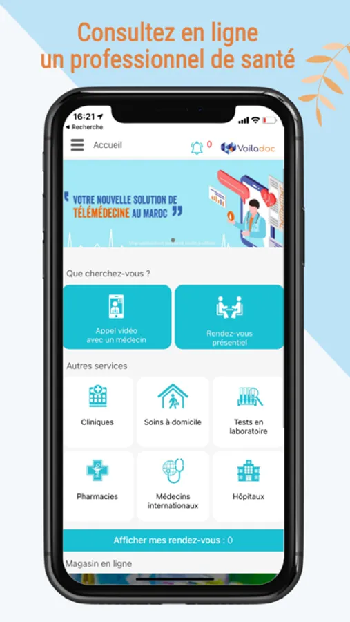 Voiladoc est une plateforme de téléconsultation et de rendez-vous médicaux en ligne pour téléphones mobiles qui vous connecte à des professionnels de santé, certifiés par les autorités médicales, à tout moment, où que vous soyez.