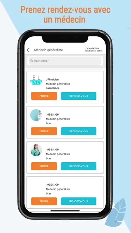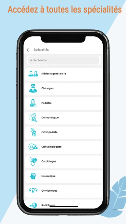 • Prendre un rendez-vous avec un médecin généraliste ou spécialiste pour une téléconsultation immédiate ou différée, pour une visite au cabinet médical / hôpital / clinique, ou pour une visite à domicile d’un professionnel de santé (médecin, infirmier(ère), physiothérapeute, sage-femme).
