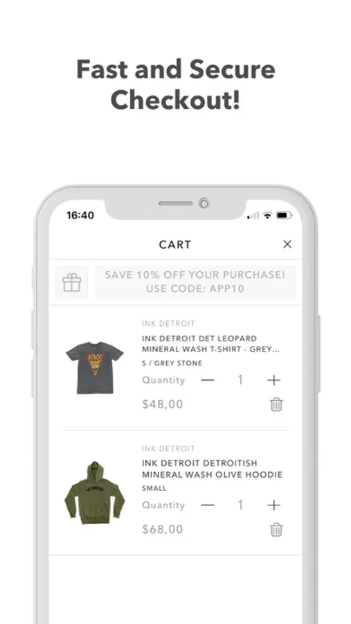 Improve your shopping experience with Ink Detroit App. Be the first to see our latest collections, enjoy in app only discounts, make a wishlist of your favorite items and keep all of your orders and shipping information in one place.