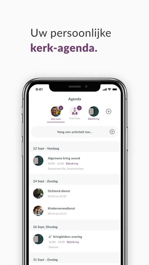 Dankzij onze unieke groepenstructuur helpen wij kerken beter te communiceren. Met de hele gemeenschap, maar ook onderling. U kunt zelf groepen toevoegen en mensen daarvoor uitnodigen. Een slimme timeline zorgt er voor dat iedere gebruiker persoonlijke en relevante informatie ziet.