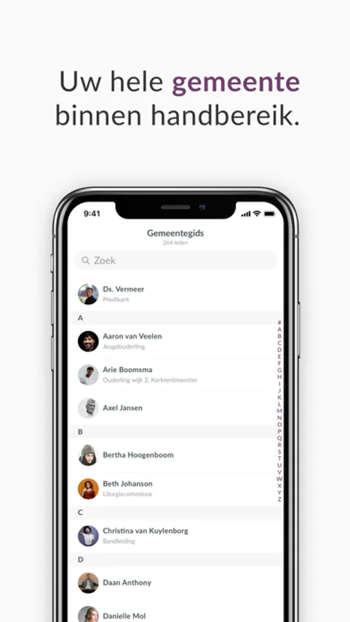 Wie zoekt er tegenwoordig nog een telefoonnummer op in het telefoonboek? Vrijwel niemand! Dankzij de gemeentegids feature is iedereen binnen uw kerkelijke gemeente terug te vinden. Snel berichten sturen, naar een adres navigeren of zien wat iemands rol in de kerk is? Met de digitale gemeentegids wordt het makkelijk.
