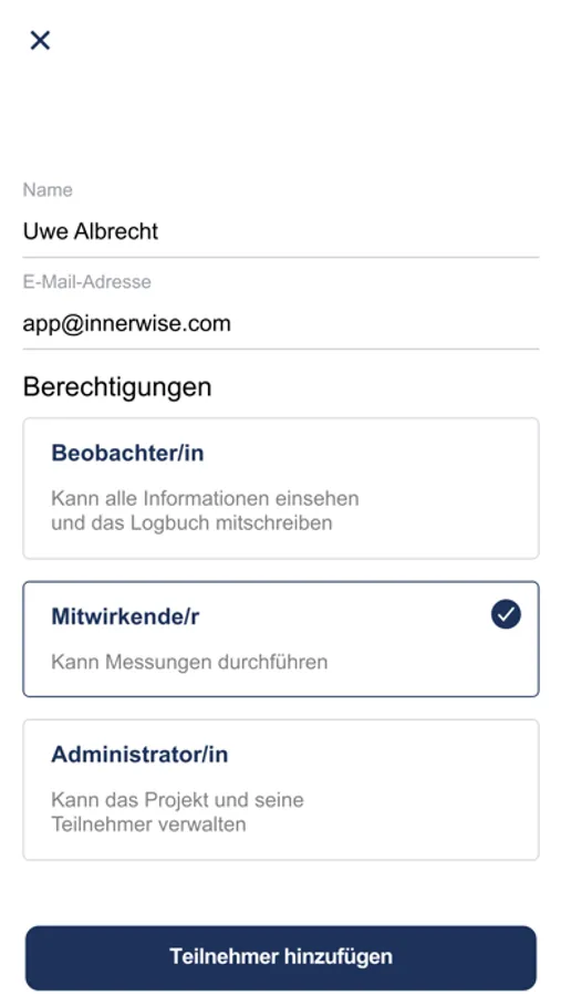 Hier sind auch Teamfunktionen zur Kollaboration möglich: andere Menschen können die Parameter mit beobachten oder auch mit bestimmen.