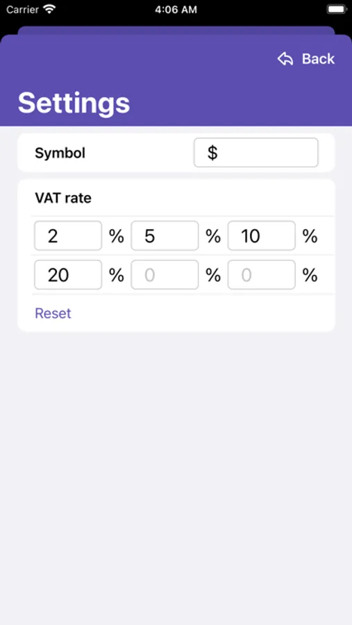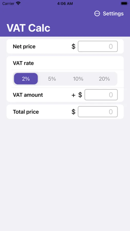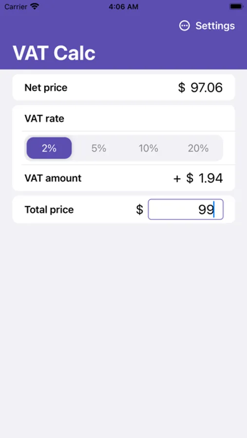 Enter the amount excluding VAT or the amount including VAT and choose the VAT rate.