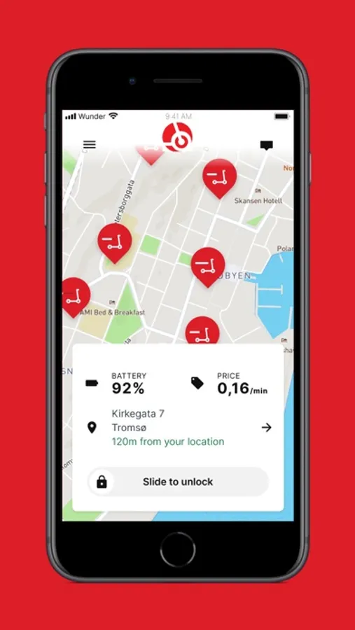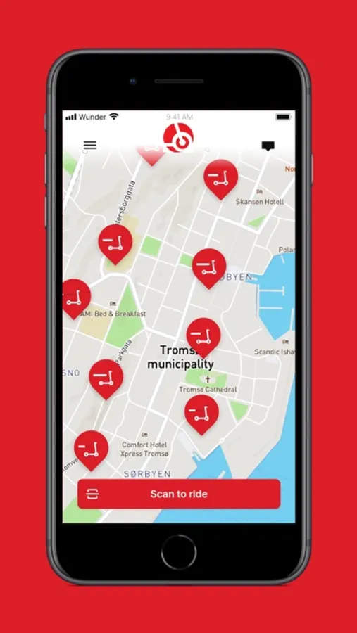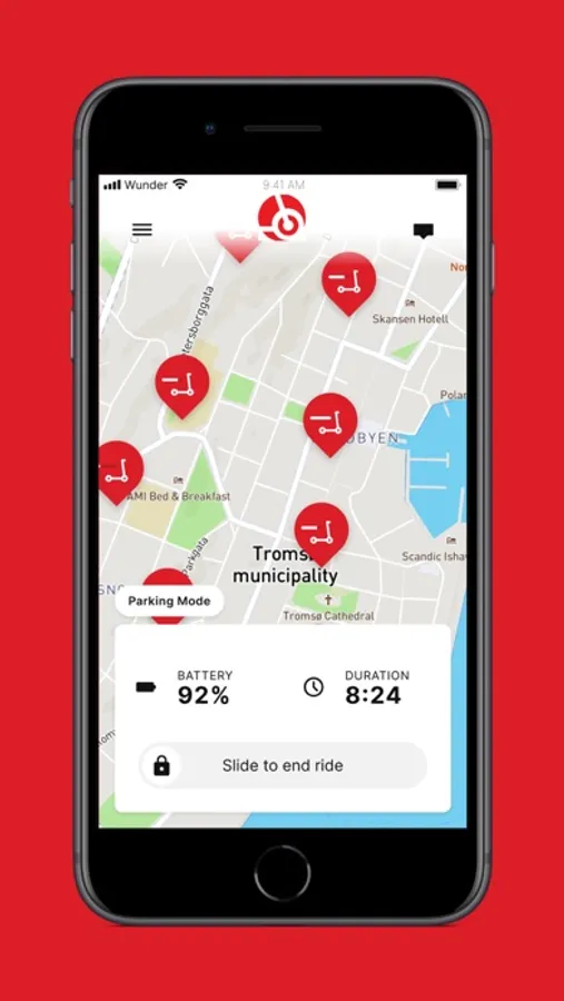 - Lås opp din sparkesykkel ved å skanne QR-koden