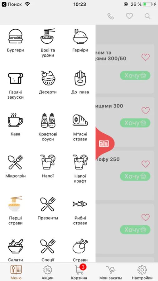 Використовуючи мобільний додаток Кухня Chef'S U, ви з легкістю можете замовити бургери, wok, м'ясні страви на будь-який смак. Доступні в додатку докладні описи і якісні фотографії страв допоможуть вибрати саме те, чого ви бажаєте