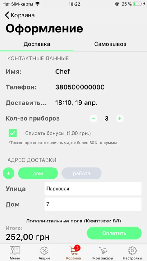 • встановити час доставки замовлення додому;