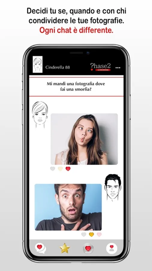 Non serve caricare una o più fotografie sul proprio profilo personale rendendole visibili a tutti ma, in base al grado di confidenza raggiunto, ciascuno potrà decidere se e quali immagini condividere con la persona con cui si sta relazionando. Ogni singola chat avrà le proprie fotografie.