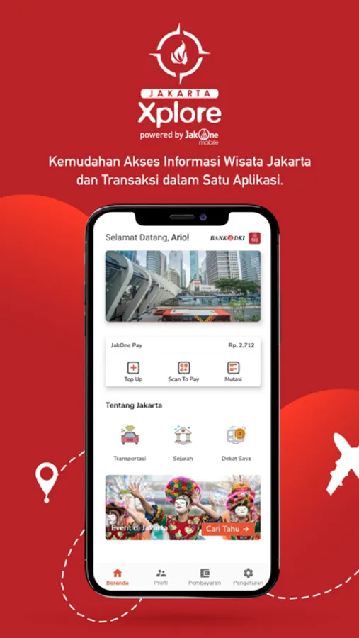 Aplikasi ini juga dilengkapi dengan layanan informasi Tentang Jakarta, transportasi Jakarta, informasi kuliner, tempat wisata dan informasi event terdekat di DKI Jakarta, serta fitur Scan to Pay QRIS untuk kemudahan bertransaksi.