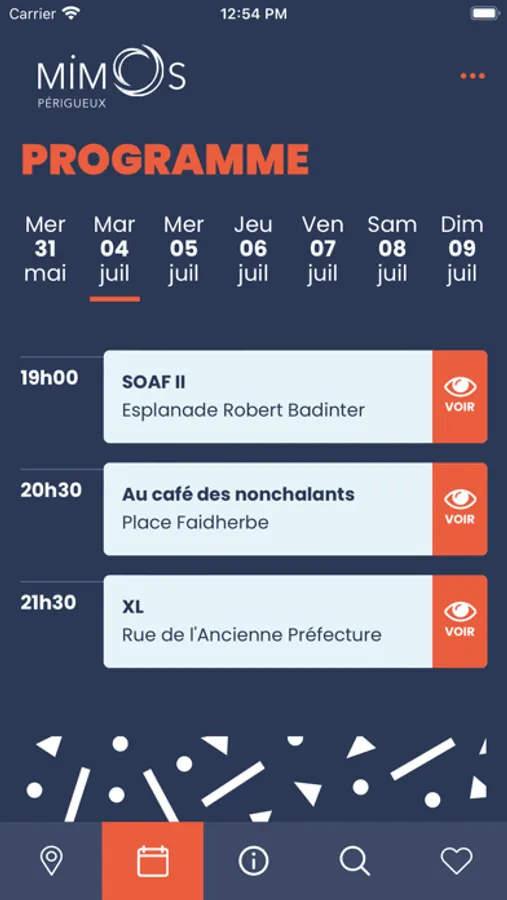 Téléchargez l'appli MIMOS et les laisser-vous guider dans le festival. Développée par l'équipe du festival, l'appli MIMOS vous permettra de sélectionner vos spectacles favoris, d'être averti en direct des éventuels changements de spectacles, de voter pour votre compagnie du OFF préférée ou encore d'être guidé jusqu'aux lieux de représentation !