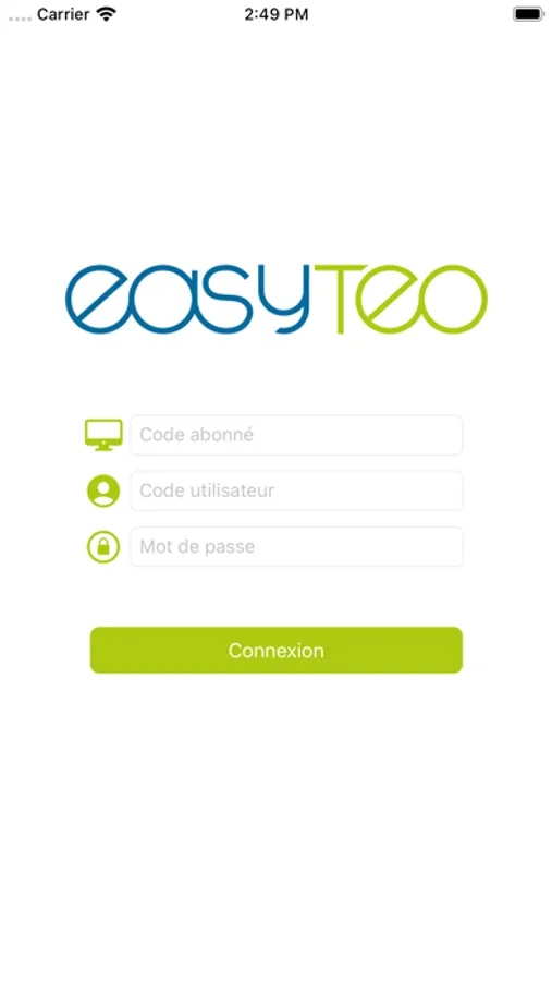 Pour utiliser l’application vous devrez vous identifier de la même manière que lorsque vous vous connectez depuis un ordinateur mais vous n’aurez à le faire qu’une seule fois ; ensuite vous accéderez à votre compte Easyteo d’un simple clic sur le pictogramme de l’application.