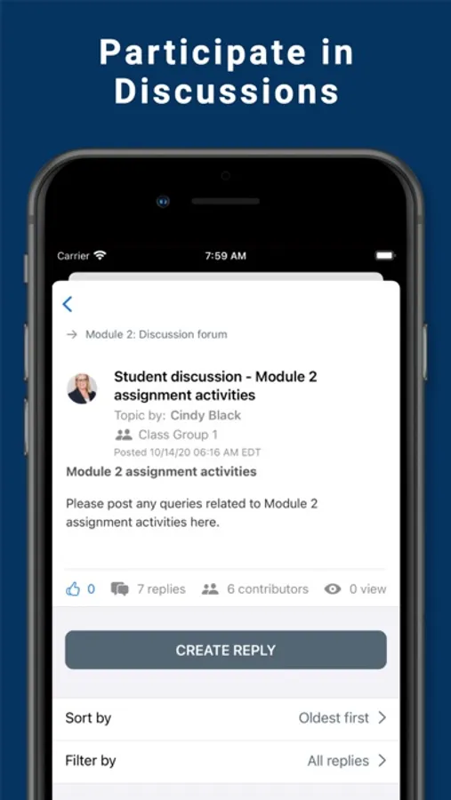 - Receive instant notifications of forum mentions, assignment updates, and more