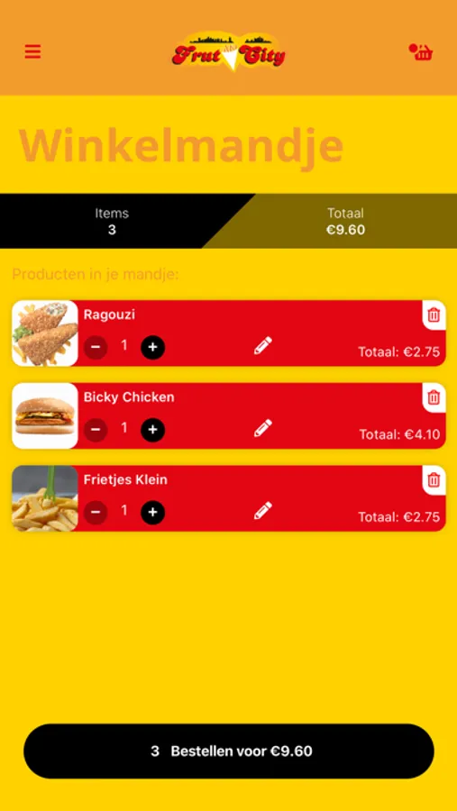 Waar u ook bent, met de app van Frut City kan u zonder zorgen bestellen uit het uitgebreide assortiment aan frieten, snacks, burgers, ...