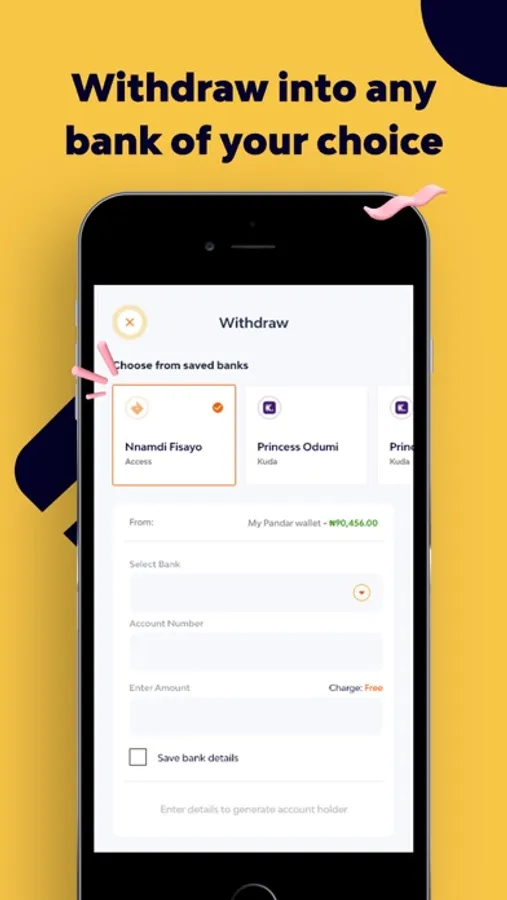 Transfer from Pandar To Pandar for free & Send Money to other Bank Accounts only on Pandar