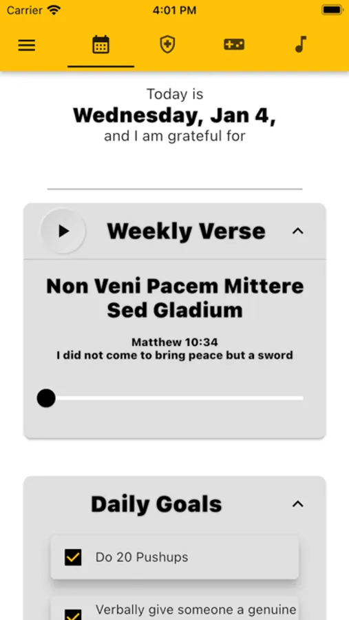 CREDO helps you prepare for your day by setting Daily Goals and focusing on something each day for which to be grateful.