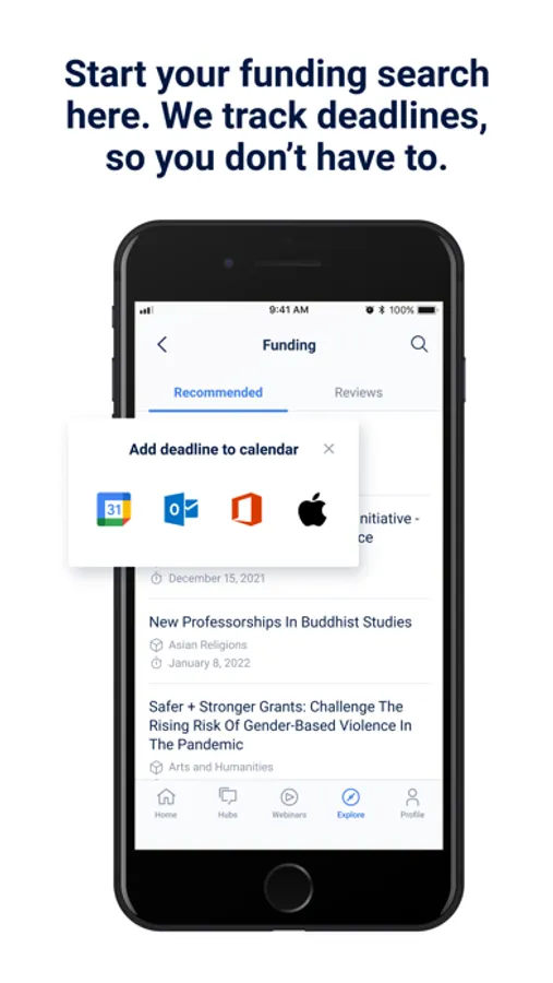 • Funding – A massive, one-of-a-kind funding search database. Cross reference grant opportunities that you would otherwise miss, by field, geographic region, and funder. See deadlines and eligibility criteria and get directed to the resources you need to apply.