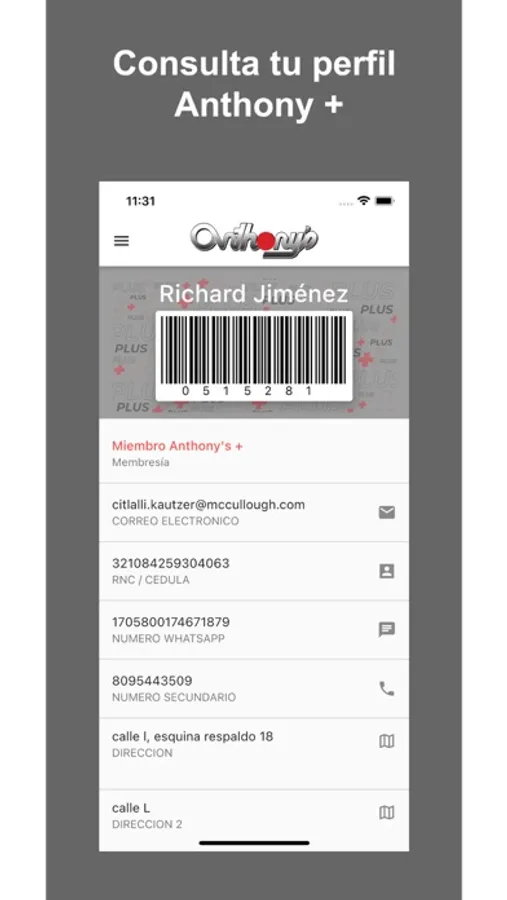 Tiendas Anthony's es una tienda física de ropa para hombre y mujer. Esta app te permite consultar tu historial de compras y Anthony's pesos