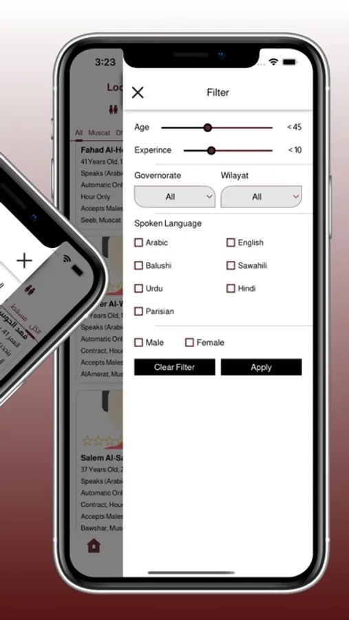 o Provides basic and sub filters to filter and sort-out instructors list through several inputs such as: Gear (manual/automatic), instructor gender, work experience, age, governorate and state, working hours, instructor’s spoken languages and other inputs.