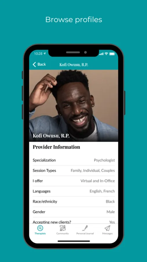Mental health & wellness professionals can list their profile in the marketplace. Clients can browse through the profiles and search by specialization, location, gender, price, and more. You can link to your website and social media. You can promote your therapy group, resources, jobs, events and more. You have access to insights and reporting including profile views and website clicks. Signing up is quick and easy.
