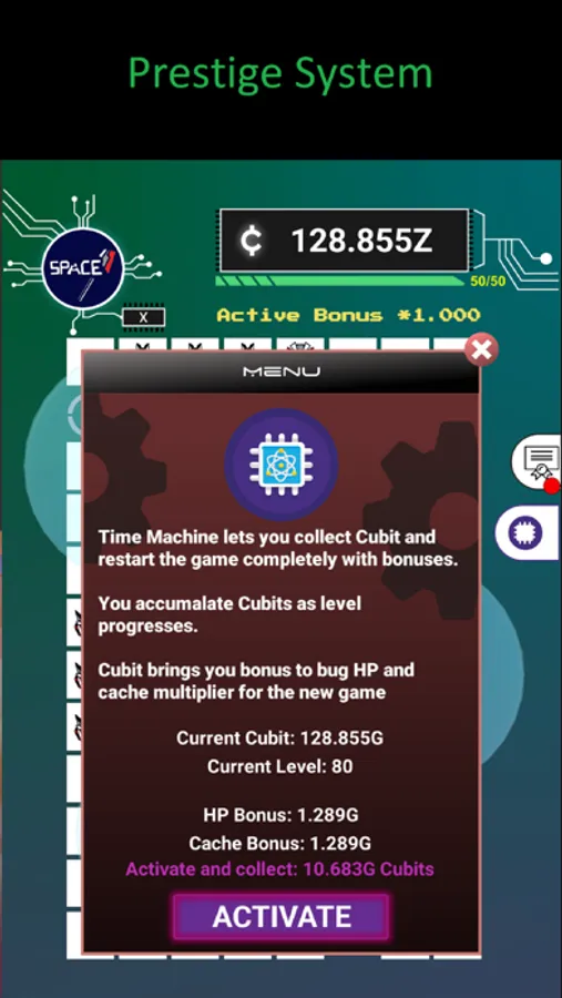 - Prestige feature: Unlock the Time Machine and start anew with additional benefits.