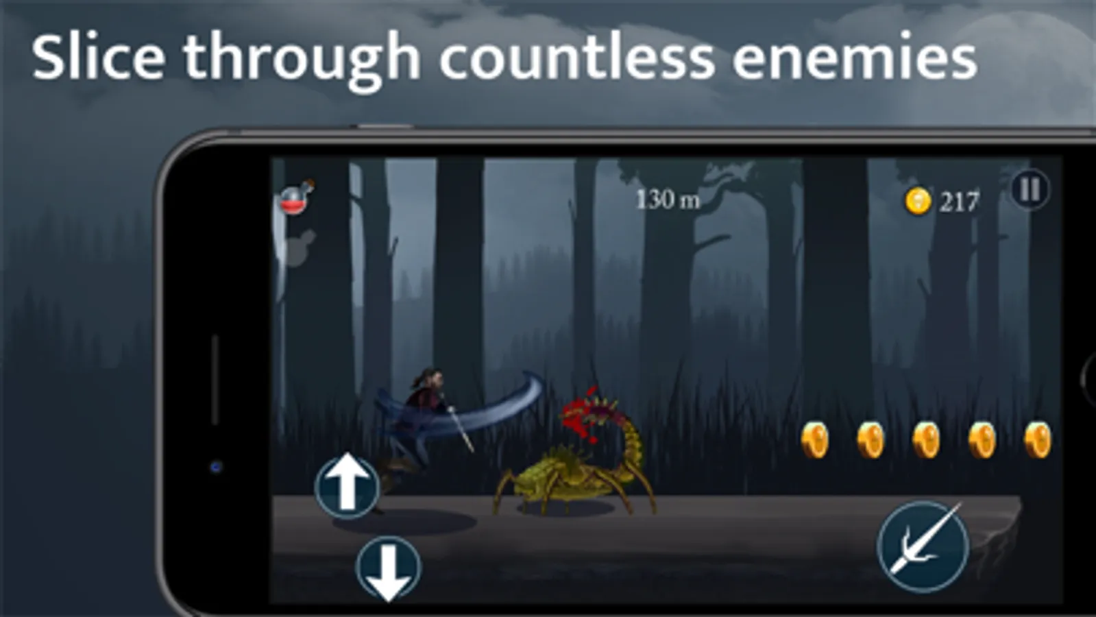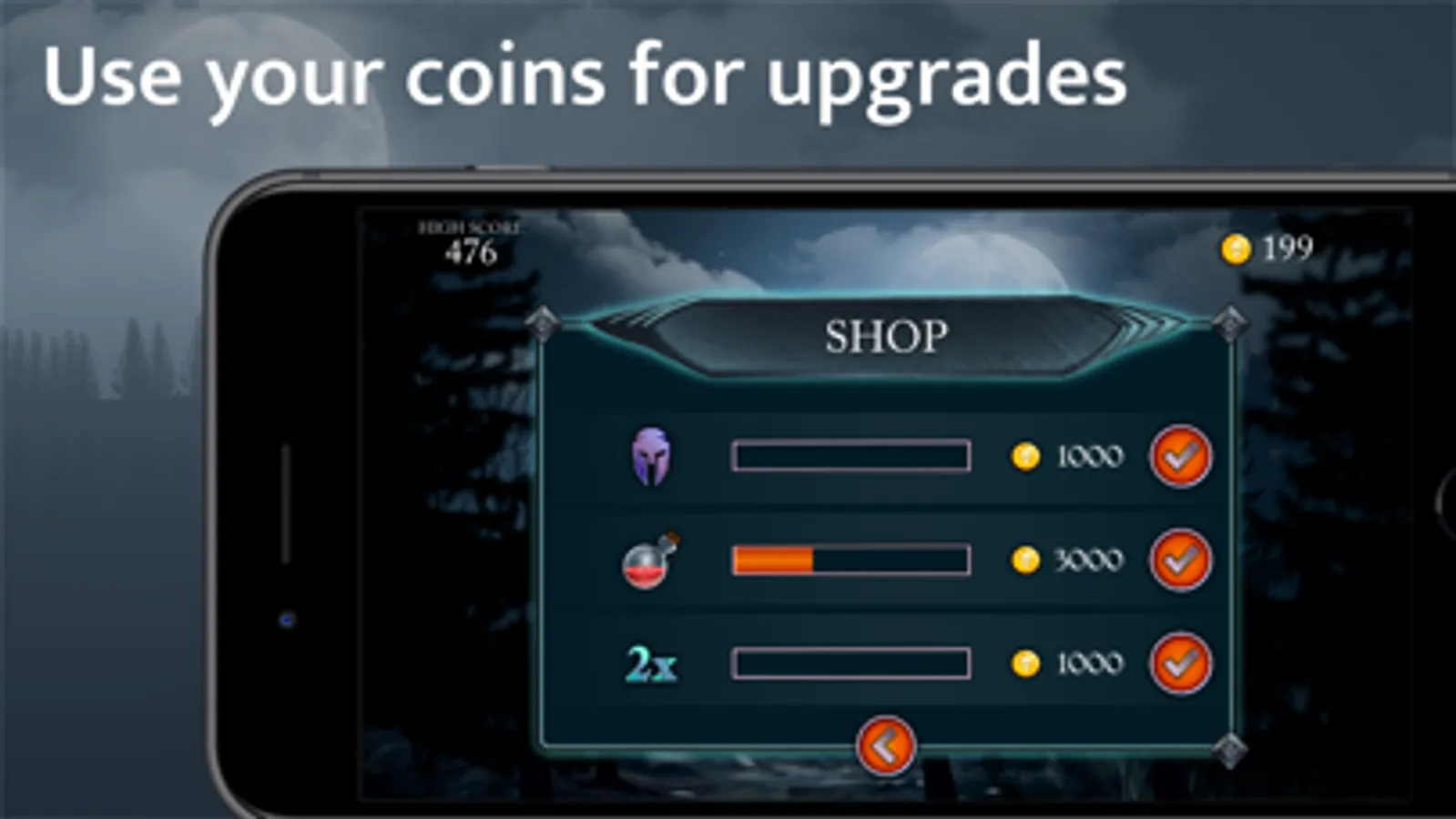 Have no mercy against every last monster standing in your way to boost your score while collecting coins to upgrade power-ups hidden all across the dark forests.