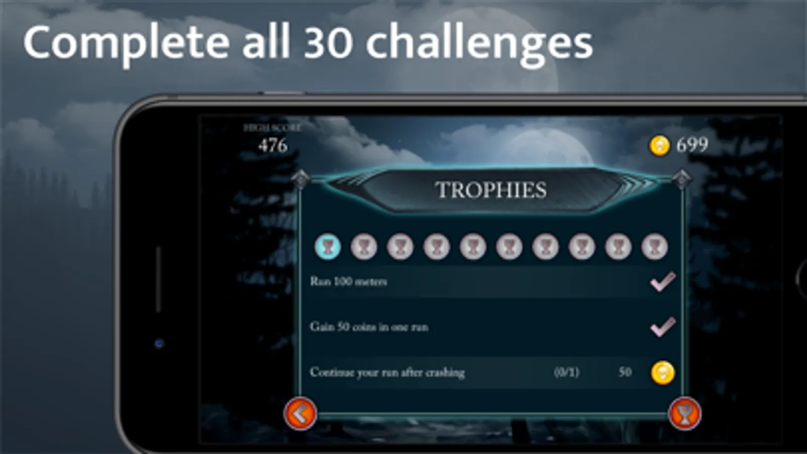 Collect all 10 trophies and track them in Game Centre. Each trophy is achieved once three challenges have been completed.